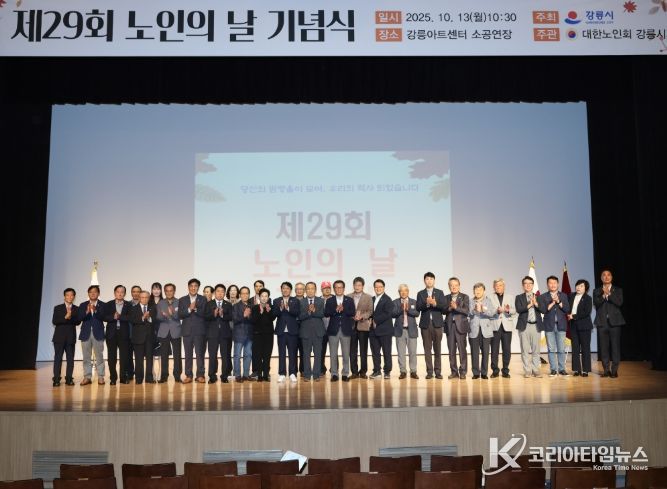 코리아타임뉴스 윤경수 기자 | 강릉시는 13일 오전 10시 강릉아트센터 소공연장에서 '제29회 노인의 날 기념식'을 개최한다.