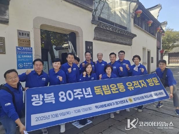 코리아타임뉴스 윤광희 기자 | 광복 80주년을 맞아 중국 내 항일 독립운동 유적지를 탐방한 경기도의회 ‘독도사랑ㆍ국토사랑회’와 ‘역사바로세우기 경기연대’가 5일간의 일정을 마치며, 선열들의 숭고한 정신을 이어받아 경기도에서 올바른 역사관을 정립하고, 영토 주권 수호를 위한 활동을 더욱 강력히 펼쳐나가겠다고 다짐했다.