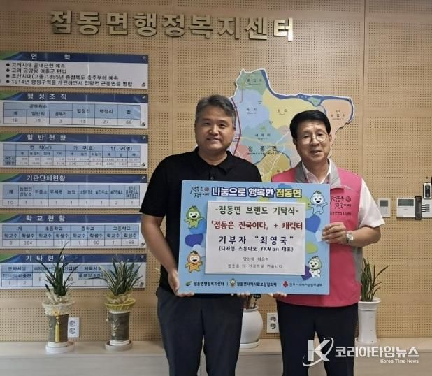 신광식 점동면장은 “쉽지 않은 일에 선뜻 기부 의사를 밝히고 오랜기간 동안 수정과 보완 작업을 이어오며, 점동면의 복지브랜드 발전을 위해 마음을 나눠주신 최영국 대표님께 깊이 감사드린다”며 “이번 제작된 디자인과 캐릭터 ‘오갑이’를 적극 활용해 “점동은 진국이다” 브랜드의 가치를 널리 알리고, 더 많은 주민이 함께 참여하는 따뜻한 복지공동체를 만들어가겠다”고 전했다.