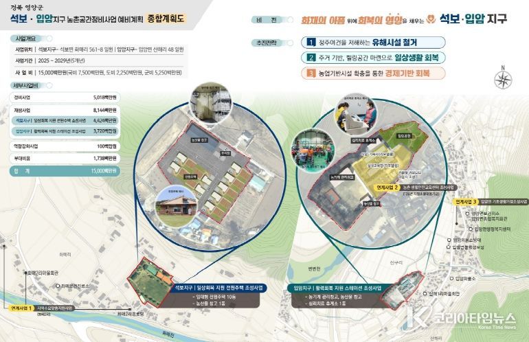 코리아타임뉴스 노승선 기자 | 영양군은 농림축산식품부 주관 ‘2025년 농촌공간정비사업’ 공모에서 석보‧입암지구가 최종 선정되어 총사업비 150억원을 확보했다고 13일 밝혔다.