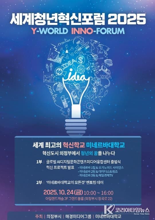 코리아타임뉴스 기동취재팀 | 의정부시는 10월 24일 오전 10시, 아일랜드캐슬 2층 그랜드볼룸에서 ‘세계청년혁신포럼 2025(Y-WORLD INNO-FORUM)’를 개최한다.