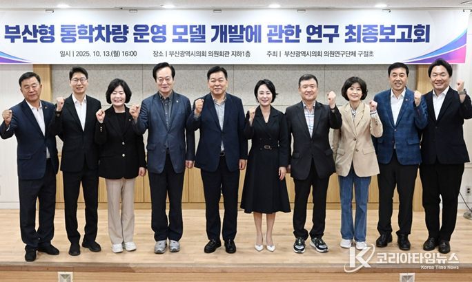 코리아타임뉴스 부산취재본부 | 부산광역시의회 의원연구단체 ‘구절초’(대표 강철호 의원)는 10월 13일에 『부산형 통학차량 운영 모델 개발에 관한 연구』용역 최종보고회를 개최하고, 부산의 지형과 통학 현실을 반영한 실행 가능한 운영 모델을 제안했다.