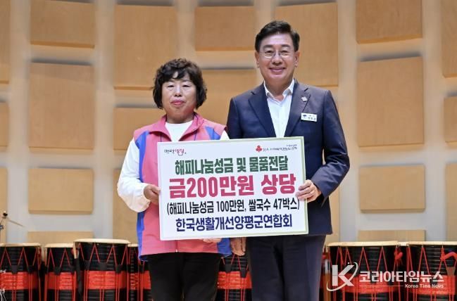 코리아타임뉴스 기동취재팀 | 한국생활개선양평군연합회는 지난 9월 30일부터 10월 1일까지 강릉 한국여성수련원에서 열린 ‘2025년 생활개선양평군연합회 한마음대회’에서 쌀국수 47박스와 현금 100만 원, 총 200만 원 상당의 해피나눔성금을 기탁했다고 밝혔다.