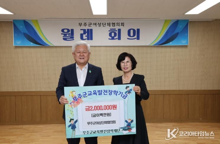 코리아타임뉴스 전북취재본부 | 무주군여성단체협의회는 지난 14일 무주여성센터에서 (재)무주군교육발전장학재단에 2백만 원, 무주군청소년상담복지센터에 1백만 원의 장학금을 기탁했다.