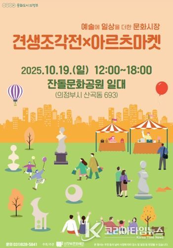 첫 번째는 10월 19일 12시부터 18시까지 잔돌문화공원(산곡동 693)에서 열리는 '견생조각전×아르츠마켓'이다. 의정부문화재단과 고산주민자치회가 공동 기획한 이 행사는 '비어 있던 풍경, 견생조각전(見生彫刻展)으로 채우다 - 고산동 작은 영웅들과 함께하는 어울림 한마당'으로 진행된다. 20여 개의 아르츠마켓 부스는 물론, 야외 조각전시와 다채로운 공연이 더해져 시민들에게 문화 향유의 폭을 넓힐 것으로 기대된다.