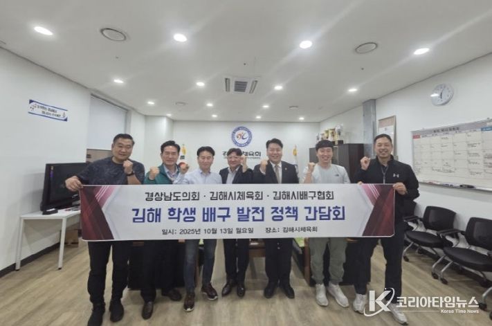 코리아타임뉴스 박찬식 기자 | 경남도의회 교육위원회 이시영(국민의힘, 내외동) 의원이 13일 김해시체육회 회의실에서 ‘김해시 학생 배구 발전을 위한 정책 간담회’를 개최했다. 간담회에는 김해시체육회 서동신 회장, 김해시배구협회 우봉석 회장, 김해화정초 박무열 배구지도자를 비롯한 관계자들이 참석해 김해 학교 배구의 중장기 발전 방향을 모색했다.