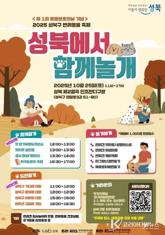코리아타임뉴스 문화팀 | 서울 성북구가 2025년 성북구 반려동물 축제 ‘성북에서 함께놀개’를 오는 10월 25일 토요일 성북 제2월곡잔디구장에서 개최한다.