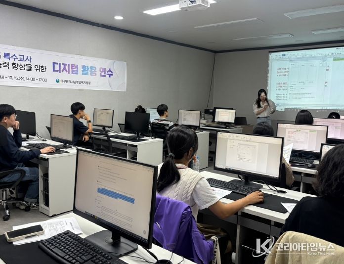 코리아타임뉴스 사회팀 | 대구남부교육지원청은 10월 14일과 15일 이틀간 새빛캐드컴퓨터학원에서 남부특수교육지원센터 교사 15명을 대상으로 디지털 활용 연수를 진행했다고 밝혔다.