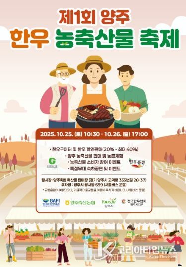 코리아타임뉴스 기동취재팀 | 양주시가 양주축산농협과 공동으로 주최하고, 경기도농수산진흥원 공모사업 지원으로 추진되는 '제1회 양주 한우 농축산물 축제'를 오는 10월 25일부터 26일까지 이틀간 개최한다.
