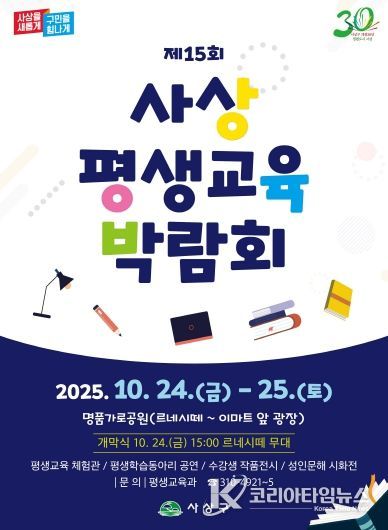 코리아타임뉴스 김태훈 기자 | 부산 사상구는 오는 10월 24일부터 25일까지 이틀간, 괘법동 르네시떼와 이마트 앞 광장에서 ‘제15회 사상 평생교육 박람회’를 개최한다.