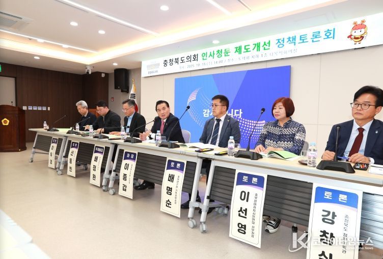 코리아타임뉴스 박찬식 기자 | 충북도의회는 15일 도의회 다목적회의실에서 ‘충청북도의회 인사청문 제도개선 정책토론회’를 열고, 지방의회의 인사청문 제도를 실질적 검증 제도로 정착시키기 위한 개선 방안을 논의했다.