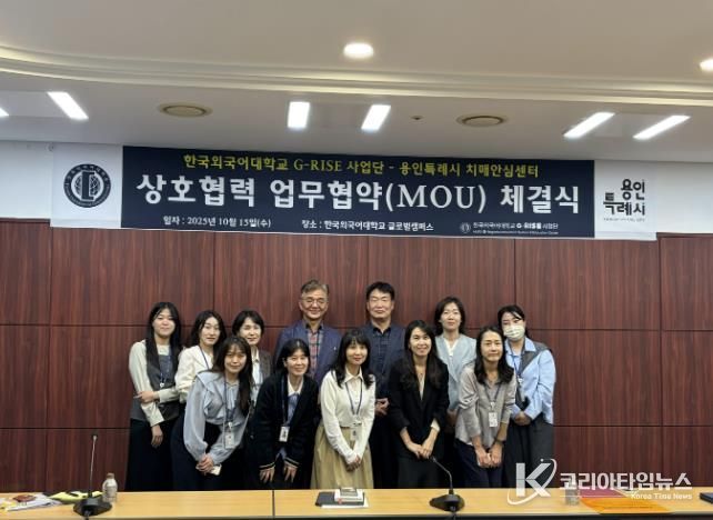코리아타임뉴스 사회팀 | 용인특례시 3개 구 보건소 치매안심센터는 지난 15일 한국외국어대학교RISE(지역혁신중심 대학지원체계)사업단과 지역사회 치매 관리를 위한 업무협약을 했다고 16일 밝혔다.