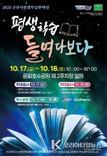 코리아타임뉴스 김태훈 기자 | 군산시가 17일~18일 2일간 은파호수공원 제2주차장 일원에서 ‘2025년 군산시평생학습한마당’을 개최한다.