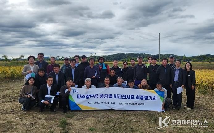 코리아타임뉴스 윤광희 기자 | 파주시는 지난 14일 장단면 거곡리에 위치한 파주시 작물실증시험포장에서 파주장단콩 품종별 비교 전시포 최종 평가회 및 간담회를 개최했다고 밝혔다.