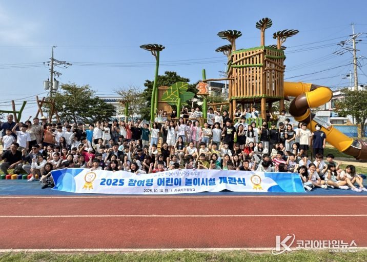 코리아타임뉴스 사회팀 | 제주도교육청 서귀서초등학교는 14일 학생과 보호자, 교직원이 함께 만든 참여형 어린이 놀이시설 개관식을 개최했다.