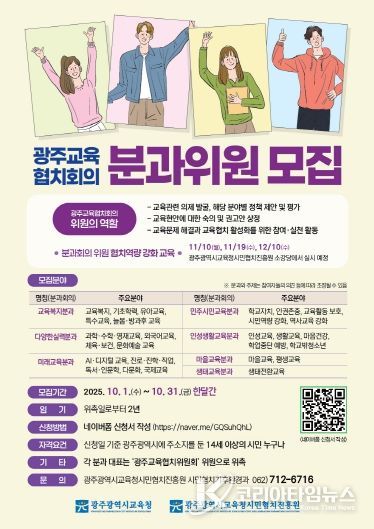 코리아타임뉴스 사회팀 | 광주시교육청시민협치진흥원이 ‘광주교육협치회의 2기 분과위원’을 공개모집한다.