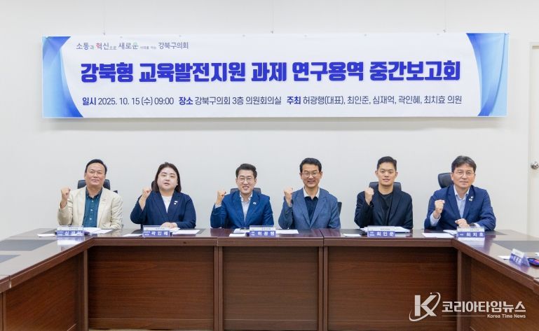 코리아타임뉴스 정치팀 | 강북구의회 의원연구단체인 ‘강북형 교육발전지원 연구회’ (대표의원 허광행)는 지난 10월 15일 의회 3층 의원회의실에서 중간보고회를 열었다.