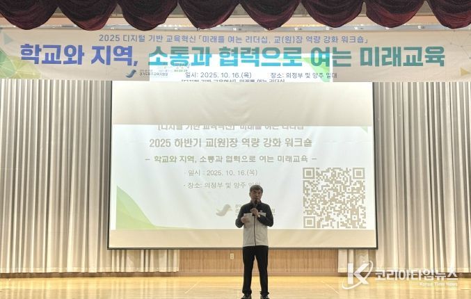 코리아타임뉴스 사회팀 | 파주교육지원청은 10월 16일 의정부공유학교 올래캠퍼스에서 관내 단설유치원․초․중․고․특수학교 교(원)장 101명을 대상으로‘미래를 여는 리더십, 교(원)장 역량 강화 워크숍’을 운영했으며, 10월 30일에는 교(원)감 110명을 대상으로 워크숍을 실시할 예정이다.