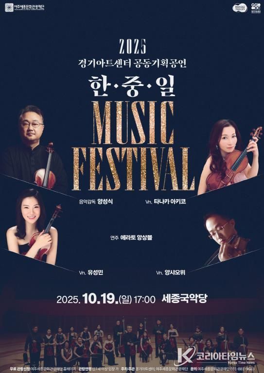 코리아타임뉴스 문화팀 | 여주세종문화관광재단이 오는 10월 19일, 경기아트센터와 공동기획으로 ‘한·중·일 뮤직 페스티벌’을 세종국악당에서 선보인다.