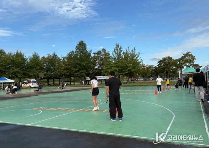 코리아타임뉴스 사회팀 | 경상북도구미교육지원청은 2025년 10월 15일 낙동강 체육공원 내 농구장에서 ‘학생 중심의 자율적 신체활동 역량 강화’를 위한 2025 도전! 체력인증 한마당을 개최했다.