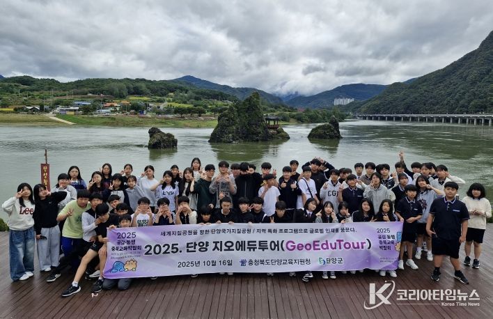 코리아타임뉴스 사회팀 | 단양교육지원청은 16일 단성중학교를 비롯한 3개 학교 1학년 학생 84명을 대상으로 단양 유네스코 세계지질공원(도담삼봉 등) 일대에서 ‘단양지오에듀투어’ 지질 탐사 체험학습을 운영했다고 밝혔다.