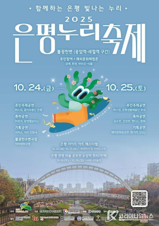 코리아타임뉴스 박찬식 기자 | 서울 은평구는 오는 24일부터 25일까지 불광천 변 일대에서 은평문화재단 주관으로 ‘2025 은평누리축제’를 개최한다고 밝혔다.