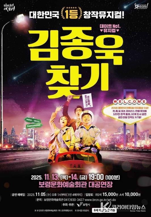 코리아타임뉴스 충남취재본부 | 보령시가 11월 13일부터 14일까지 이틀간 오후 7시 보령문화예술회관 대공연장에서 뮤지컬 ‘김종욱 찾기’ 공연을 개최한다.
