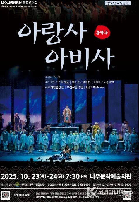 이번 공연은 나주 지역 설화인 ‘앙암바위 전설, 아랑사 아비사’를 바탕으로 한 창작음악극으로 나주의 역사와 정체성을 예술로 풀어낸 대표적인 지역 문화공연이다.
