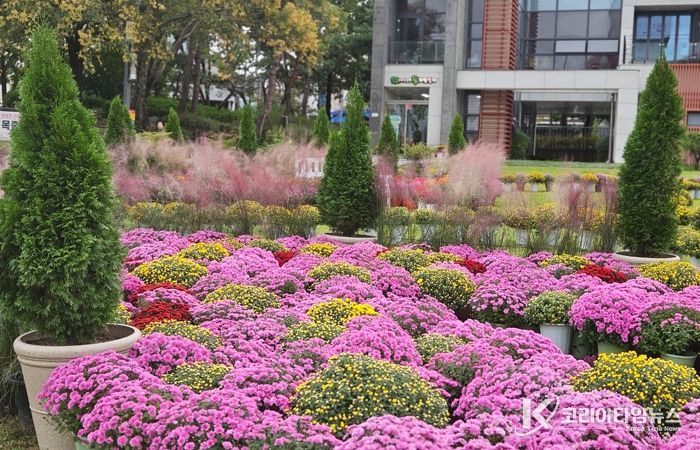 코리아타임뉴스 대전취재본부 | 대전 중구는 서대전광장 일대를 중심으로 가을을 대표하는 국화, 핑크뮬리 등을 배치하여 가을꽃 정원을 조성했다고 밝혔다.