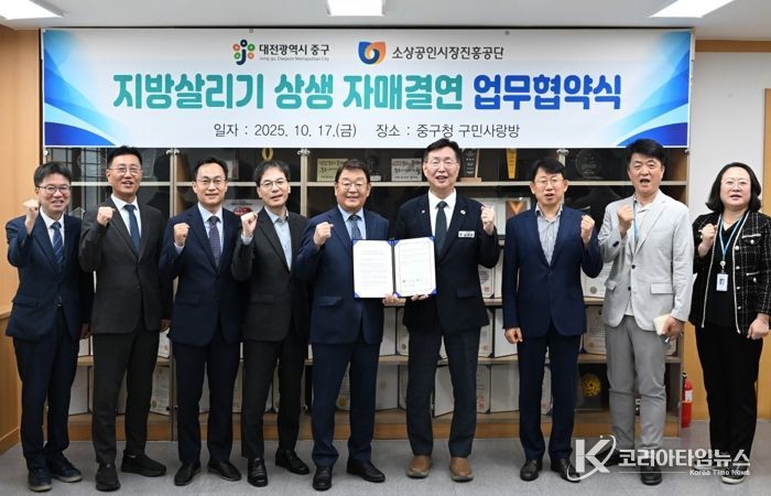 코리아타임뉴스 윤광희 기자 | 대전 중구는 지난 17일 소상공인시장진흥공단과 지방살리기 상생 자매결연 업무협약을 체결했다고 밝혔다.