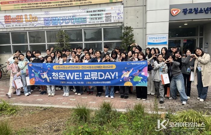 코리아타임뉴스 사회팀 | 수원시청소년청년재단 동부청소년지역센터는 천안시청소년재단과 함께 2025 수원·천안 지역 청소년운영위원회 교류활동‘청운WE! 교류DAY’를 10월 25일 광교청소년청년센터에서 성황리에 마무리했다.