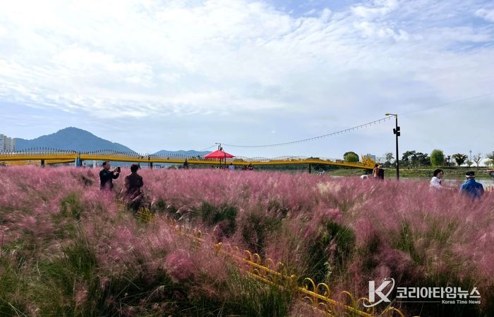 코리아타임뉴스 전남취재본부 | 장성군 황룡강 가을꽃축제 이튿날인 19일, 강변 곳곳마다 활짝 핀 가을꽃들이 방문객을 반기고 있다. 특히 용작교, 황룡정원 방면 백일홍과 연꽃정원 코스모스, 문화대교 인근 핑크뮬리가 아름답다.