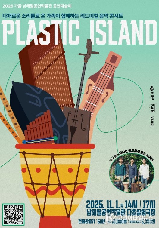 코리아타임뉴스 오영주 기자 | 남해탈공연박물관(이동면 남해대로 2412)은 오는 11월 1일, 월드뮤직 콘서트 ‘플라스틱 아일랜드 Plastic Island’를 개최한다.