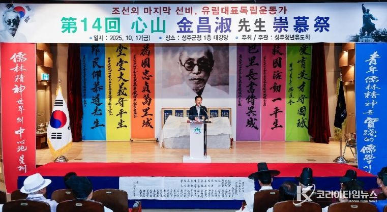 코리아타임뉴스 윤광희 기자 | 성주군은 지난 17일 성주군청 대강당에서 성주청년유도회 주관으로 제14회 심산 김창숙선생 숭모제를 개최했다.