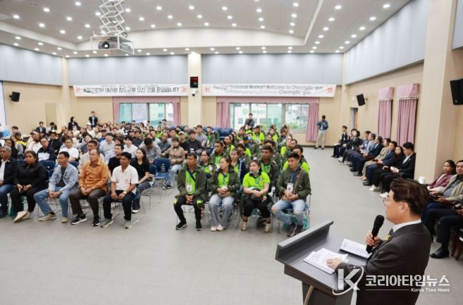 코리아타임뉴스 박찬식 기자 | 청도군은 본격적인 가을철 농번기를 앞두고 청도군에 입국한 외국인 계절근로자들의 안정적인 정착을 돕고, 고용농가와의 상호 신뢰를 다지기 위해 지난 10월 16일 농업기술센터 3층 대회의실에서 2025년 하반기 외국인 계절근로자 입국환영식을 개최했다.