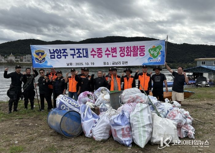 코리아타임뉴스 경기취재본부 | 남양주시는 19일 금남리 어촌계 선착장 일원에서 사단법인 한국해양구조협회 남양주구조대 주관으로 ‘수중·수변 정화활동’을 진행했다고 밝혔다.