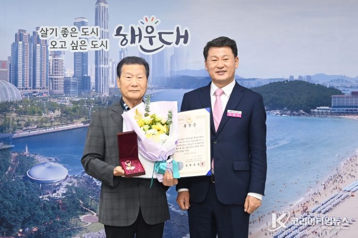 코리아타임뉴스 이아름 기자 | 해운대구는 지난 15일, 6‧25전쟁에 참전해 공을 세운 故 김용주 참전용사의 화랑무공훈장을 유족인 동생 김용범 씨에게 국방부장관을 대신해 전수했다.