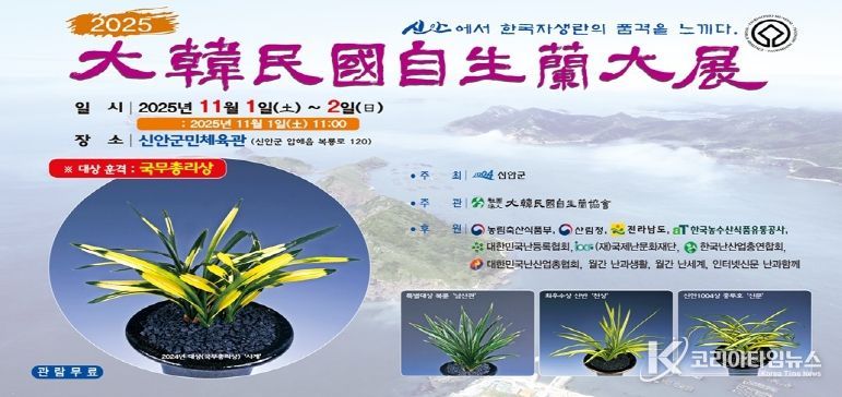 코리아타임뉴스 노승선 기자 | 2025 대한민국자생란대전이 오는 11월 1일부터 2일까지 압해도 신안군민체육관에서 개최된다. 이번 대전은 전국에서 출품된 약 2,000여 점의 자생란 작품을 선보이며, 멸종위기종을 포함한 희귀 자생란의 보존과 난문화 대중화, 산업화 기반 조성을 목표로 한다.