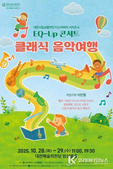 코리아타임뉴스 대전취재본부 | 대전시립교향악단은 28~29일 이틀 동안 대전예술의전당 앙상블홀에서 EQ-Up 콘서트‘클래식 음악여행’을 선보인다.
