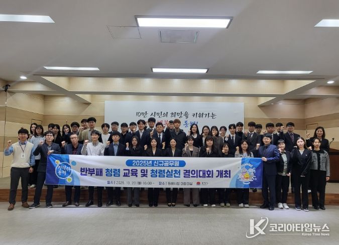코리아타임뉴스 이아름 기자 | 동해시는 2025년 신규 공무원 임용에 따라 공직생활을 시작하는 신규 공무원을 대상으로 청렴의식 함양과 공직자로서의 올바른 자세 확립을 위해 청렴 실천 결의대회를 개최했다고 밝혔다.