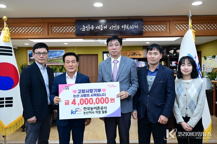 코리아타임뉴스 충남취재본부 | 논산시는 20일 한국농어촌공사 논산지사(지사장 서봉수) 직원 일동이 고향사랑기부금 400만 원을 기탁했다고 밝혔다.