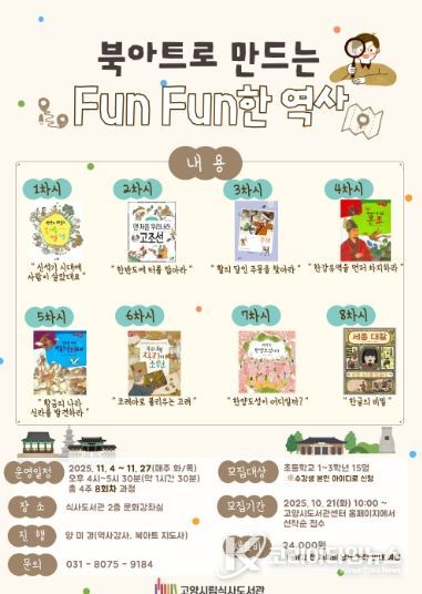 코리아타임뉴스 문화팀 | 고양특례시 식사도서관은 오는 11월 4일부터 공공도서관 어린이 독서문화 프로그램 ‘북아트로 만드는 FunFun한 역사’를 운영한다.