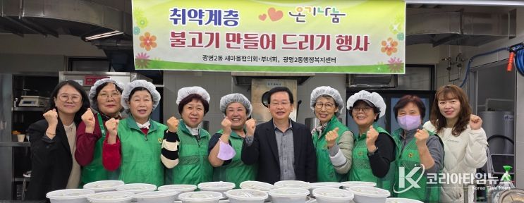 코리아타임뉴스 경기취재본부 | 광명시 광명2동 새마을부녀회는 지난 20일 광명2동 행정복지센터에서 ‘온기 나눔 사랑의 불고기’ 행사를 열었다.