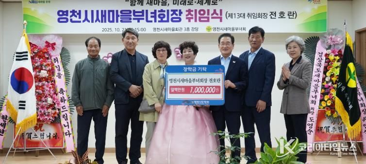 코리아타임뉴스 노승선 기자 | 영천시는 21일 새마을부녀회가 새마을회관 3층 강당에서 전호란 신임 회장 취임식을 개최하며 새로운 출발을 알렸다고 밝혔다.