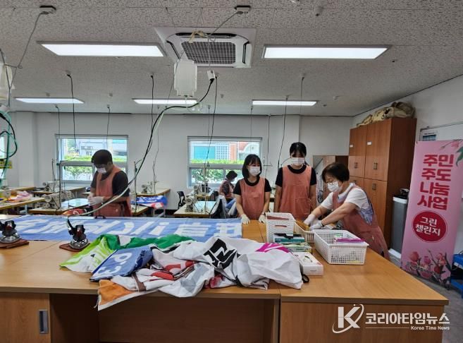 코리아타임뉴스 울산취재본부 | 서부종합사회복지관은 20일 지역주민들의 재봉기술 재능기부로 지난 대선 홍보용 폐현수막을 활용하여 마대자루 158개를 제작하여 울주군시설관리공단에 전달했다고 밝혔다.