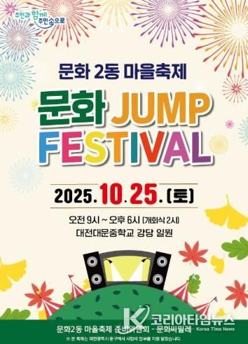 코리아타임뉴스 대전취재본부 | 대전 중구 문화2동은 오는 25일 대전대문중학교 일원에서 문화2동 마을축제“문화 JUMP Festival”를 개최한다고 밝혔다