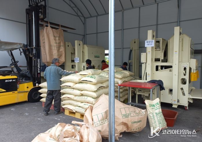 코리아타임뉴스 노승선 기자 | 해남군은 콩 수확시기 농가 일손을 덜어주기 위해 콩 선별 농가셀프 작업장을 운영해 농업인들의 큰 호응을 얻고 있다.