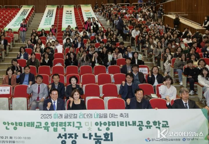 코리아타임뉴스 사회팀 | 경기도안양과천교육지원청은 10월 21일 안양시청에서‘지역교육협력을 통한 미래 글로컬 리더의 내일을 여는 축제’를 주제로'2025 안양미래교육협력지구 및 안양미리내공유학교 성장 나눔회'를 열었다.