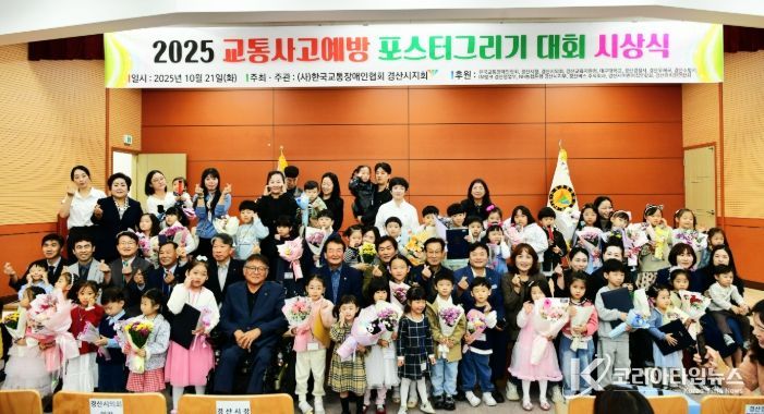 코리아타임뉴스 경북취재본부 | 사)한국교통장애인협회 경산시지회(회장 송화자)는 21일 삼성현역사문화관에서 조현일 경산시장, 입상자와 가족 등 150여 명이 함께한 가운데 '2025년 교통사고 예방 포스터 그리기 대회 시상식'을 개최했다.