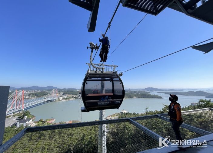 코리아타임뉴스 노승선 기자 | 가을여행주간을 맞이하여 전남도로 많은 가족단위 여행객들이 방문이 많아지면서 안전에 대한 관심이 높아지고 있는 가운데 명량해상케이블카는 지난 10월 20일 비상상황 대응 능력을 강화하기 위해 진도소방서와 함께 케이블카 합동 구조훈련을 실시했다.